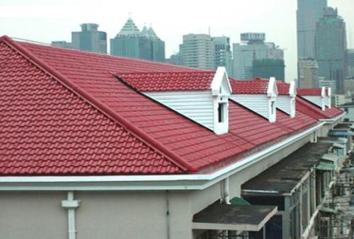3:不適合平頂大跨度屋面,合成樹脂瓦的鋪設坡度要求在20度到80度,平頂的建筑不利于流水,不適合使用合成樹脂瓦。波形防水缺陷,市場的合成樹脂瓦一般都是仿古琉璃型的,這個瓦型設計傾向于美觀仿古的同時,忽略了建筑防水的需求,扁平弧線形的波峰加之2.5cm左右的波高滿足不了大跨度建筑屋面的流水需要,或許這就是當初設計者的定位。但是筆者建議大跨度,平坡度的建筑屋面慎用合成樹脂瓦作為主要屋面材料,當然可以配合些高波形的T型瓦加以搭配使用。目前成都坤寶建筑材料有限公司針對這種情況研發(fā)出一款波高4cm的合成樹脂瓦,算是對傳統(tǒng)合成樹脂瓦缺點的補償。